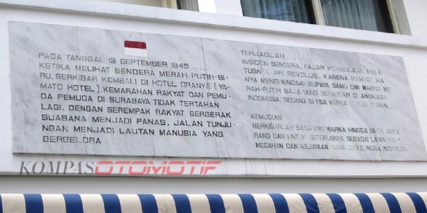 Di tempat ini terjadi peristiwa besar yang disebut dengan "Insiden Hotel Yamato" pada 19 September 1945. Saat itu, terjadi peristiwa perobekan bendera Belanda (merah-putih-biru) menjadi merah-putih (bendera Indonesia). Jadi, setelah Proklamasi Kemerdekaan Indonesia dibacakan, ada maklumat dari Presiden Soekarno untuk mengibarkan bendera negara di semua wilayah Indonesia, 31 Agustus 1945.